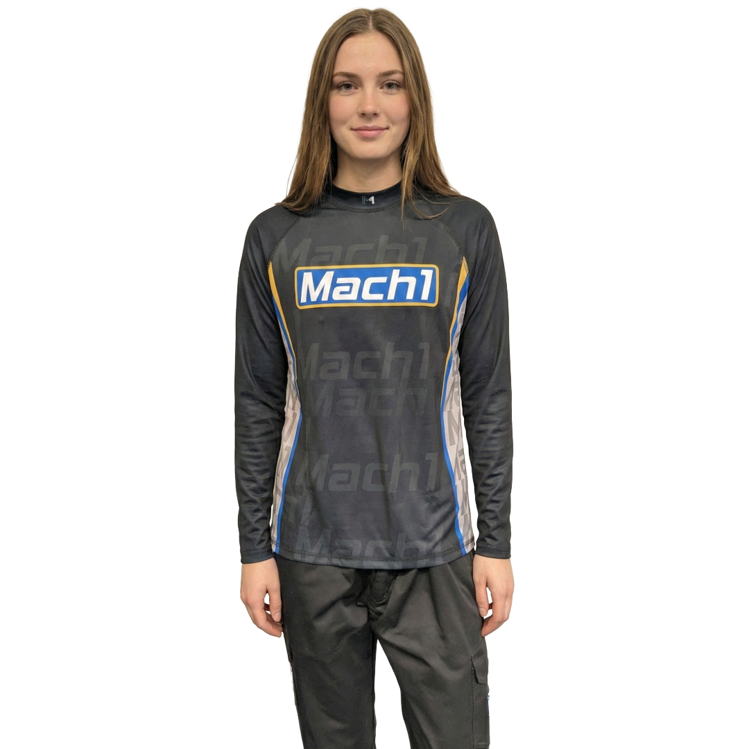 Das Mach1 Tech-Cool Undershirt ist eine hochfunktionelle Langarm-Unterwäsche, die speziell für den Einsatz unter dem Kart-Fahreranzug entwickelt wurde. Durch den engen, sportlichen Schnitt und das intelligente Klimamanagement bleibt der Körper auch bei intensiven Rennläufen trocken und leistungsfähig.
